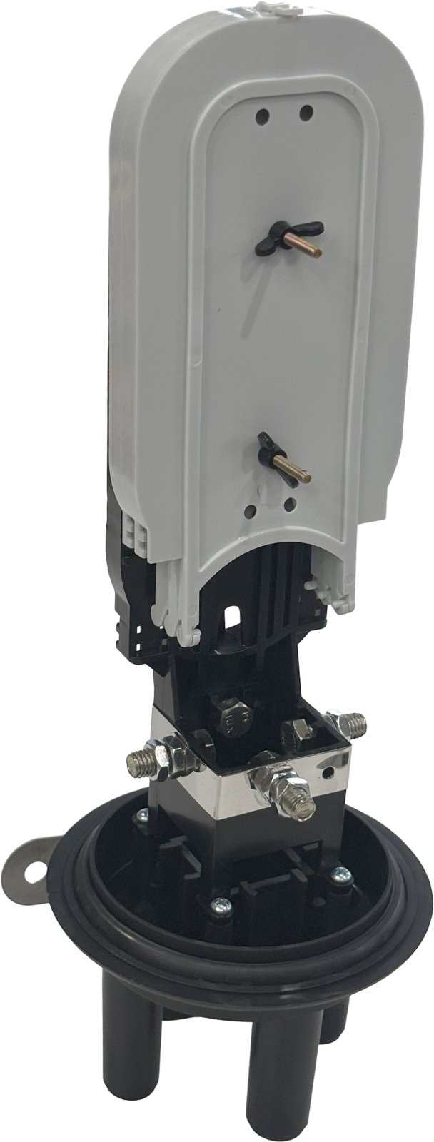 Optická zemní spojka s kapacitou pro až 48 optických spojů je navržena pro instalaci pod zem nebo na sloup. Obsahuje 2 vestavěné kazety, z nichž každá pojme 24 optických svárů ve dvou řadách. Díky krytí IP68 je spojka plně odolná vůči prachu a vodě, což zajišťuje dlouhou životnost i v náročných podmínkách. Spojka je vyrobena z černého ABS materiálu a její kompaktní rozměry činí 125 x 125 x 425 mm, což usnadňuje instalaci a manipulaci.