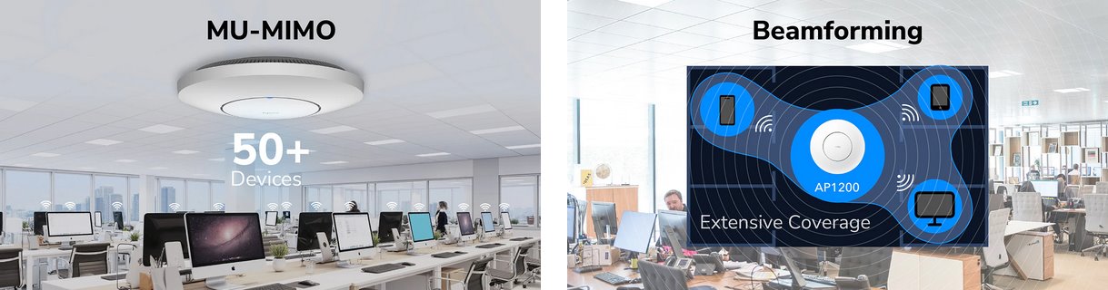 Tento Access Point disponuje Gigabitovým LAN portem s podporou pasivního 24V i 802.3af/at PoE, DC jackem s 12V napájením, Dual-Band Wi-Fi 5 dosahuje rychlosti 300 Mbps v 2.4 GHz pásmu, 866 Mbps v 5 GHz a podporuje technologie jako MU-MIMO, *Band Steering a Beamforming.