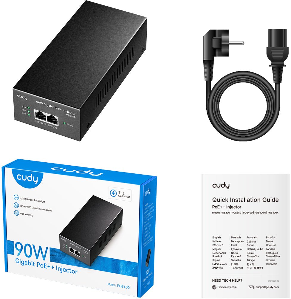 Cudy POE400 1G PoE injektor, 802.3af/at/bt, 90W