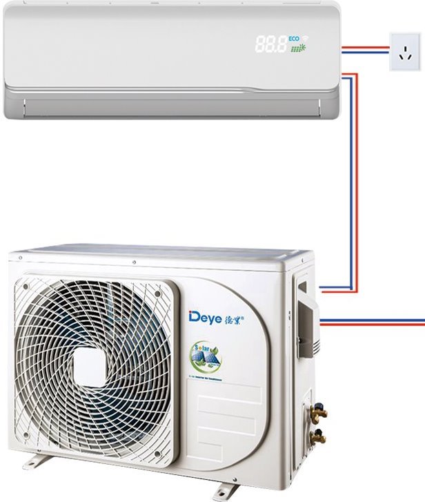 DEYE Hybridní AC/DC Solární klimatizace 5kW s potrubím, vnitřní a vnější jednotka