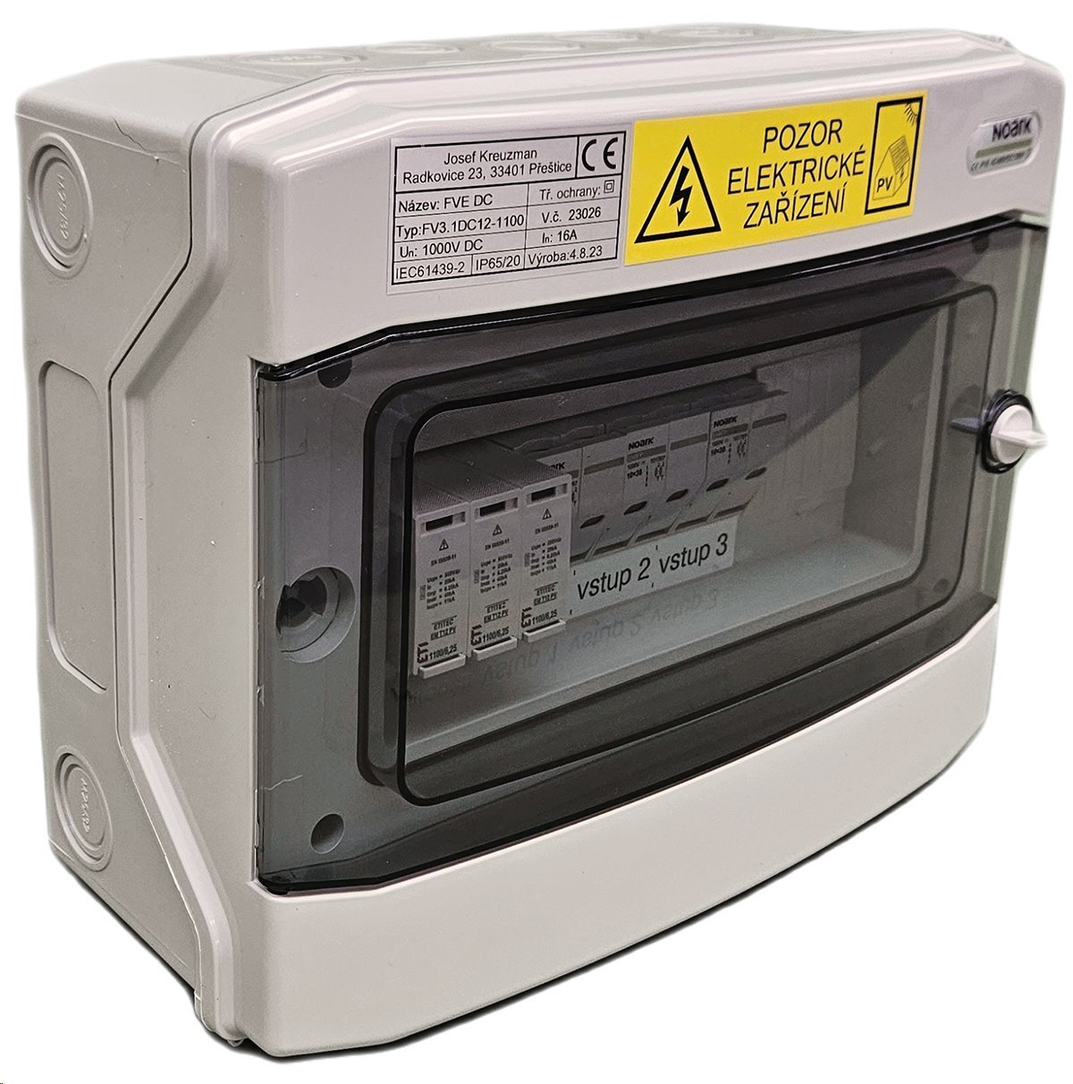 Elektrický rozvaděč pro FVE, 3 stringy, 1 svodič, 1100V DC