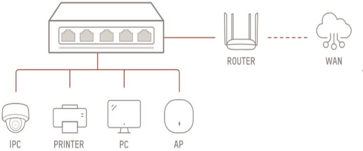 Hikvision DS-3E0105D-O Switch, 5x LAN