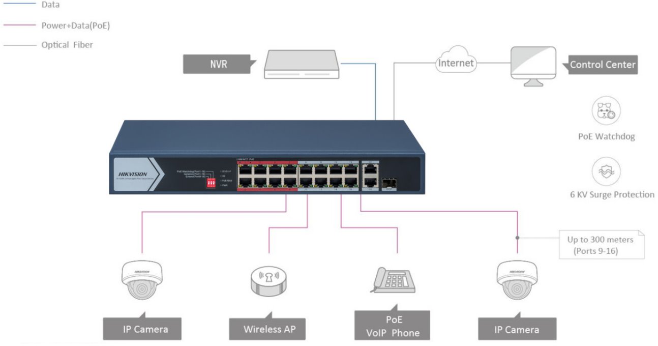 Hikvision DS-3E0318P-E/M(C) PoE switch, 16x PoE, 130W
