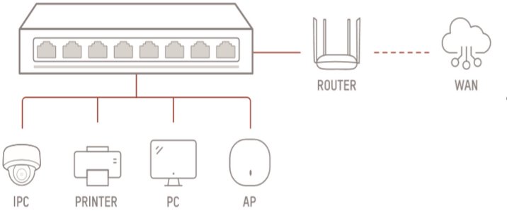 Zařízení je typu Plug-and-Play, takže není nutná žádná odborná instalace ani konfigurace. Stačí připojit napájení a síťové kabely a switch začne okamžitě fungovat. Nechybí podpora MDI/MDIX, což znamená, že není třeba řešit typ použitého kabelu – přepínač automaticky rozpozná a přizpůsobí se připojenému zařízení. Vhodné pro pracovní stanice, tiskárny, IP kamery, chytré televize a další zařízení vyžadující rychlé síťové spojení.