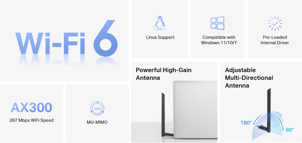 Bezdrátový USB adaptér přináší vysokorychlostní připojení až 287 Mb/s, které výrazně zrychlí vaše každodenní online aktivity — od streamování videí ve vysokém rozlišení až po hraní her bez zpoždění. Díky technologii Wi-Fi 6 poskytuje moderní řešení pro ty, kdo chtějí svému zařízení dodat nový impuls bez nutnosti výměny celého počítače. Adaptér je ideální pro upgrade starších zařízení, která potřebují rychlejší a efektivnější bezdrátové připojení