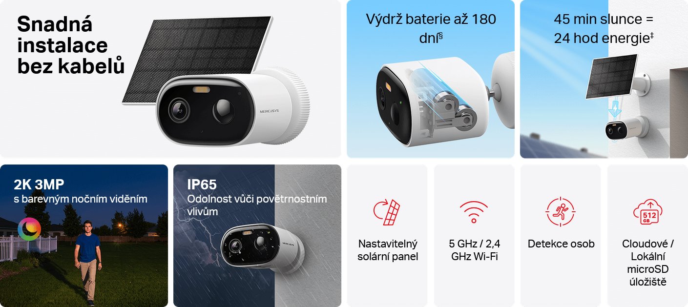 MERCUSYS MC410 KIT, Chytrá bezdrátová bezpečnostní kamera + solární panel, 3Mpx