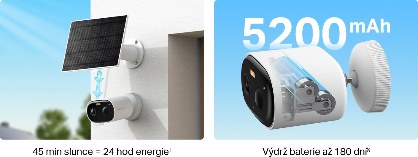 Spolehlivá ochrana domova i okolí bez nutnosti složité instalace. Díky solárnímu napájení a vestavěné baterii s kapacitou 5200 mAh zůstává kamera stále připravena k provozu. Stačí ji nainstalovat a dlouhodobě se stará o bezpečí bez pravidelného dobíjení či údržby.