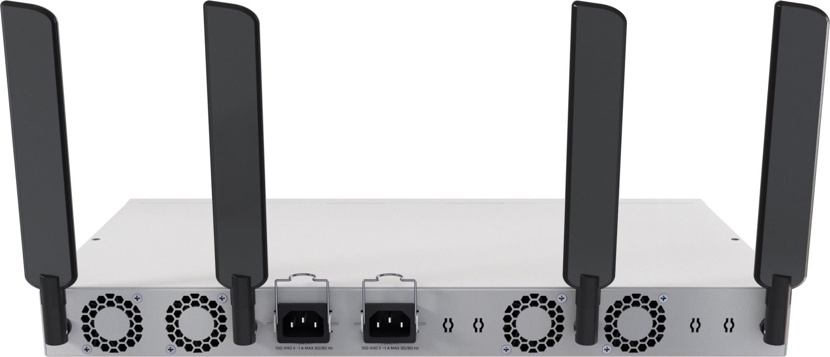 Integrované Wi-Fi 6 s technologií 4×4 MIMO zajišťuje rychlé a stabilní bezdrátové připojení, pokrývající obě pásma 2,4 GHz a 5 GHz. Pro optimální pokrytí nabízí zařízení dedikované otvory pro externí antény, které lze umístit mimo rackmount skříň. Díky redundantnímu napájení s dvěma AC vstupy a podpoře PoE-out je switch ideální pro zajištění vysoké spolehlivosti a flexibility. RouterOS v7 s pokročilými funkcemi, včetně VLAN segmentace a traffic shaping, poskytuje komplexní nástroje pro správu a monitoring celé sítě.