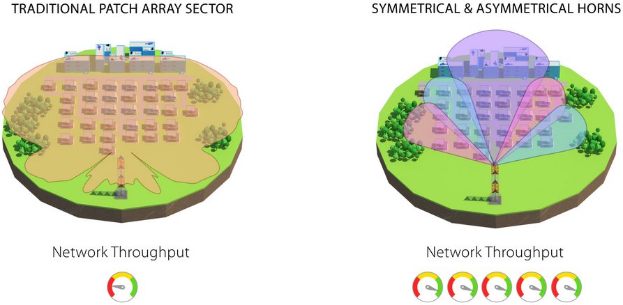 RF elements Asymetrická sektorová Horn anténa Carrier Class, 5GHz, 17dBi, 45°