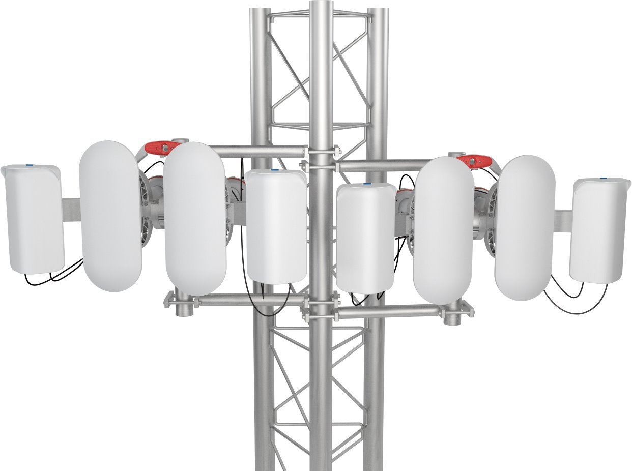 Dvě nezávislé asymetrická WideBand Horn sektorové antény s TwistPortem od RF elements pracují v 5 GHz a 6 GHz frekvenčním pásmu, poskytují zisk 15 dBi a 4 chainy (lze použít pro 2 nezávislá rádia 2x2 MIMO