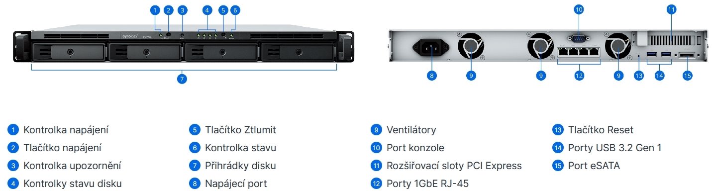 Stabilní výkon zajišťuje přenosová rychlost přes 2 100 MB/s při čtení a 1 000 MB/s při zápisu, která umožňuje plynulé sdílení, zálohování i synchronizaci dat v reálném čase. Kompaktní 1U provedení s 4 pozicemi poskytuje ideální rovnováhu mezi výkonem a úsporným využitím prostoru. Řešení postavené na systému DSM přináší intuitivní správu a široké možnosti využití pro moderní firmy.
