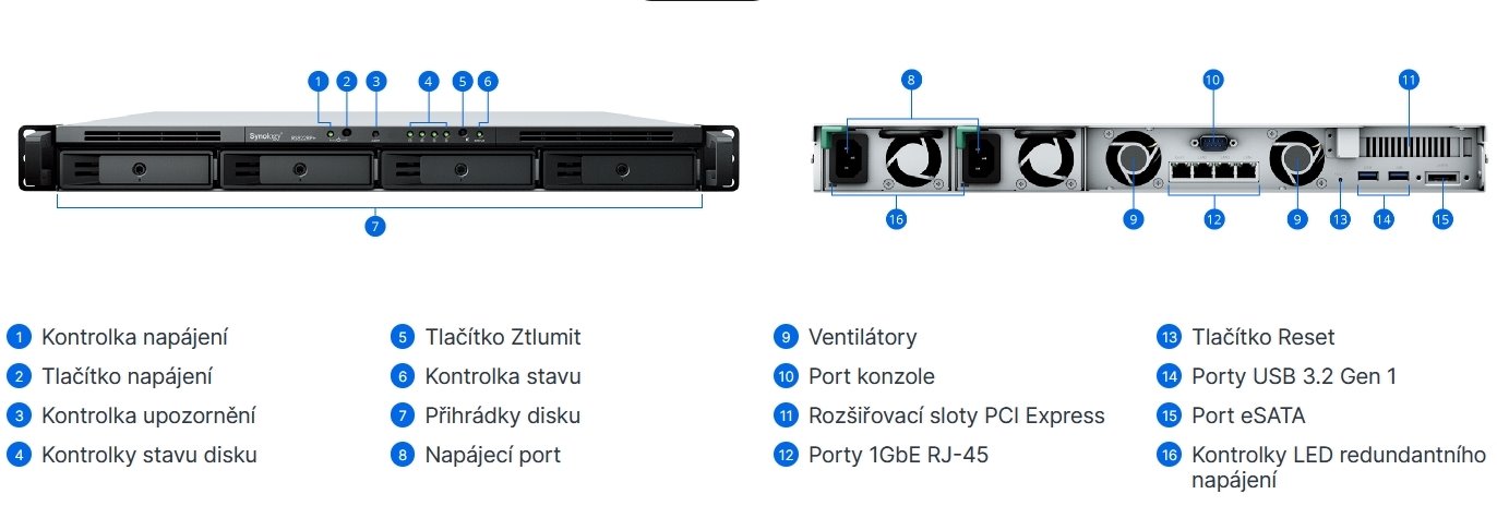 Stabilní výkon zajišťuje přenosová rychlost přes 2 100 MB/s při čtení a 1 000 MB/s při zápisu, která umožňuje plynulé sdílení, zálohování i synchronizaci dat v reálném čase. Kompaktní 1U provedení s 4 pozicemi poskytuje ideální rovnováhu mezi výkonem a úsporným využitím prostoru. Řešení postavené na systému DSM přináší intuitivní správu a široké možnosti využití pro moderní firmy.