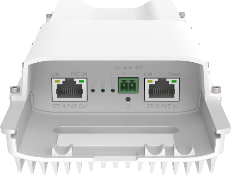 Sektorová anténa s vyzařovacím úhlem 120° horizontálně a 50° vertikálně umožňuje efektivní pokrytí oblasti až do vzdálenosti 1,5 km. Na jeden sektor lze připojit až 32 klientů, což zajišťuje vysokou kapacitu sítě. K dispozici je 2,5GbE port s pasivním PoE vstupem a Gigabitový port s PoE výstupem umožňující připojení dalšího zařízení, například kamery, záložní Wi-Fi s možností failover přepojení při výpadku 60 GHz linky.