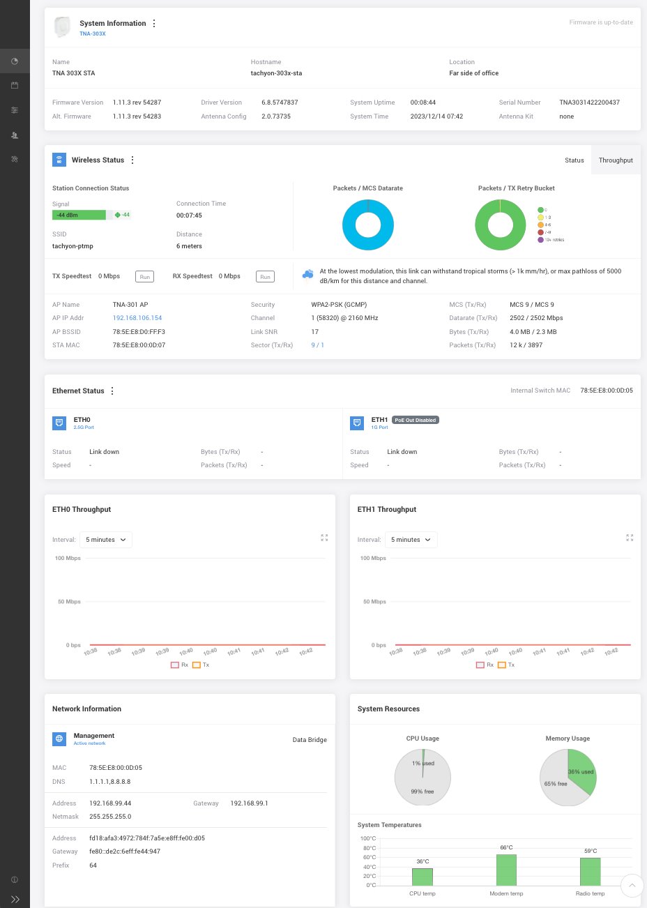 Tachyon TNA-305X, Modulární 60 GHz jednotka s 5 GHz zálohou, PTP + PtMP