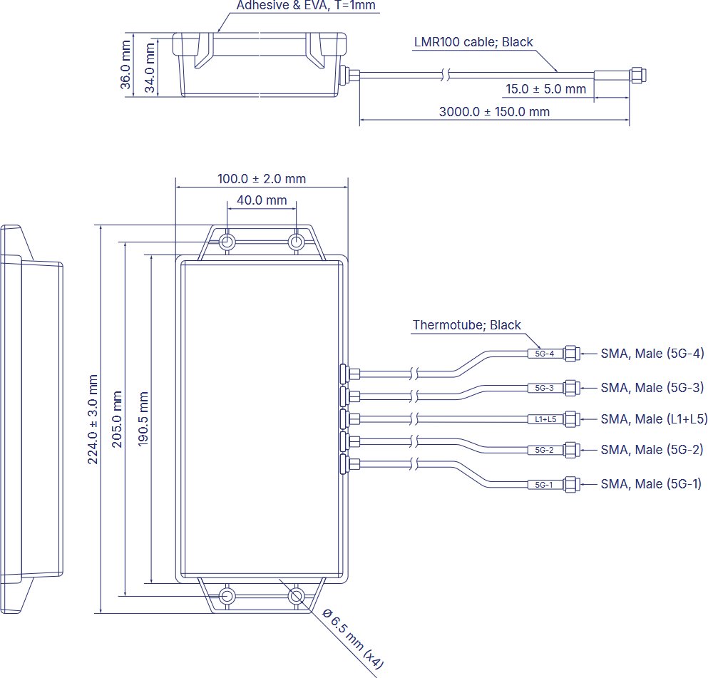 Navržena pro široké spektrum navigačních a mobilních aplikací, anténa zajišťuje stabilní výkon i v náročných podmínkách. Díky zisku 4 dBi pro navigaci a 2 dBi pro mobilní sítě poskytuje konzistentní a silný signál v městském i odlehlém prostředí. Podpora GNSS a LTE technologií umožňuje univerzální využití napříč zařízeními, zatímco MIMO technologie a lineární polarizace zvyšují propustnost dat a kvalitu přenosu.