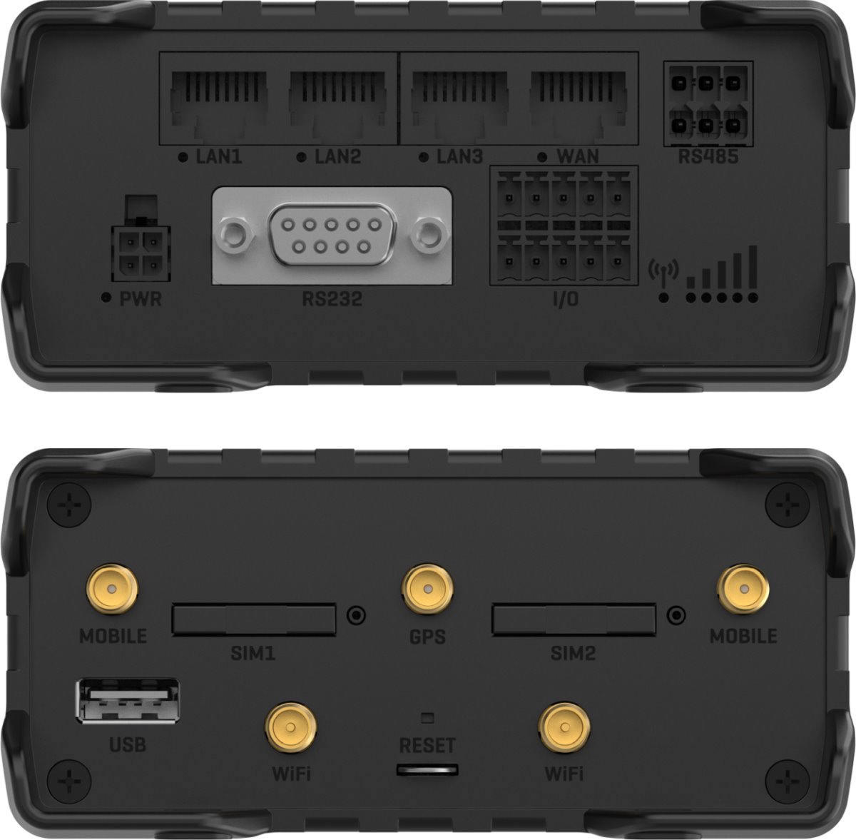 Široké možnosti připojení zahrnují 4× Ethernet (1× WAN, 3× LAN), Wi-Fi 802.11b/g/n a sériová rozhraní RS232 a RS485 pro integraci se stávající infrastrukturou. Nechybí digitální a analogové I/O porty pro monitoring a řízení technologií ani integrovaný GNSS (GPS, GLONASS, BeiDou, Galileo) pro přesnou lokalizaci a synchronizaci času. Procesor Mediatek MIPS 580 MHz a 128 MB RAM zajišťují stabilní provoz, což z tohoto řešení činí spolehlivý základ pro průmyslové sítě, energetiku i dopravu.