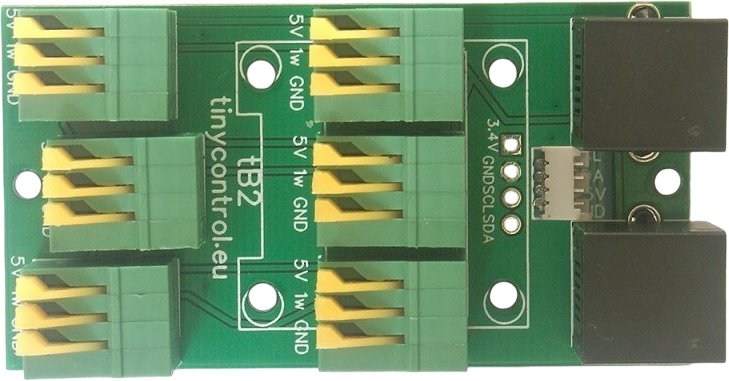 Tinycontrol tB2 Rozšiřující deska s 1wire a 6x terminál, I2C pro LAN controller LK3