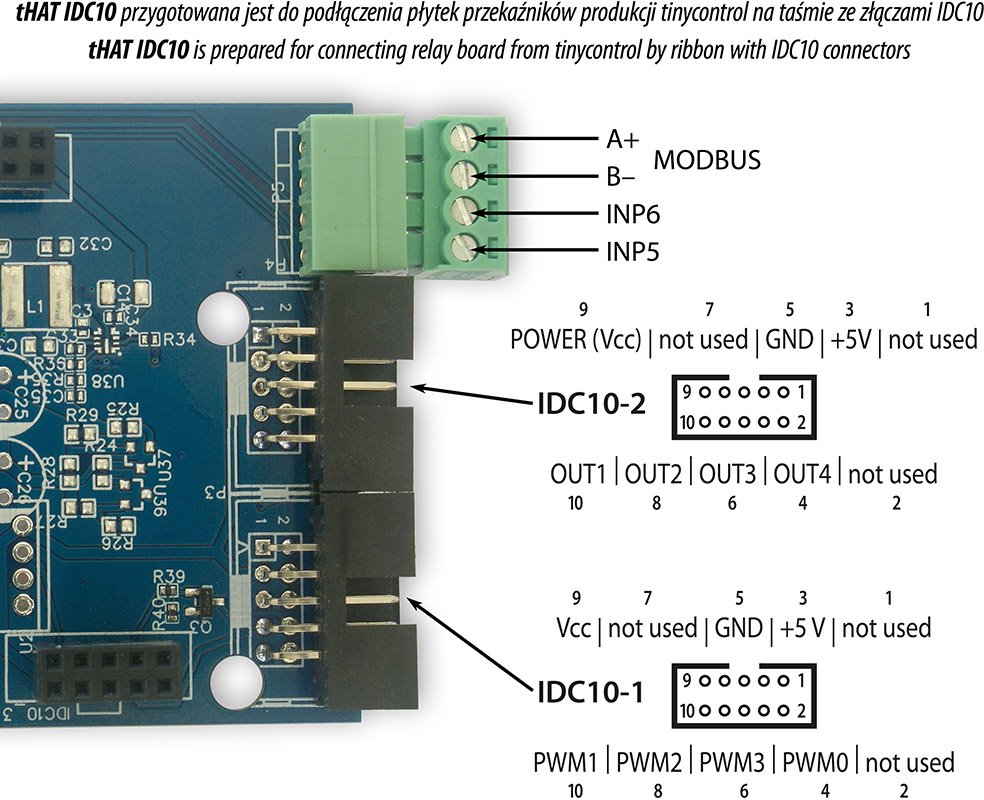 Tinycontrol tHAT2 rozšiřující deska s 4x relé a MODBUS pro LAN controller LK3