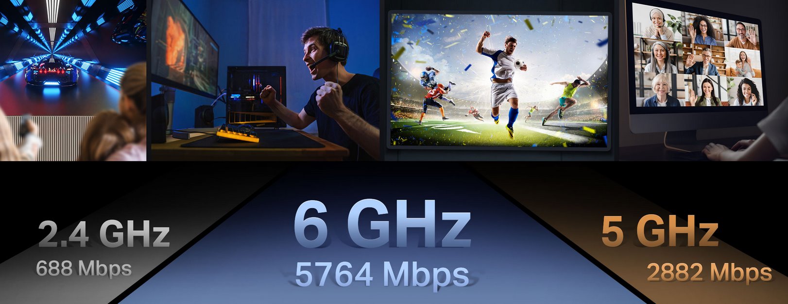 Odemkněte plný potenciál moderní bezdrátové sítě díky třípásmové Wi-Fi 7, která přináší rychlosti 5765 Mb/s (6 GHz), 2882 Mb/s (5 GHz) a 688 Mb/s (2,4 GHz). Čisté a široké pásmo 6 GHz nabízí maximální propustnost bez rušení, ideální pro hraní her, streamování ve vysokém rozlišení i práci s velkými daty. Nejnovější standard Wi-Fi 7 zajišťuje vyšší efektivitu, nižší odezvu a stabilní výkon i při vysokém zatížení sítě, zatímco zpětná kompatibilita umožňuje bezproblémové použití se staršími routery a zařízeními.