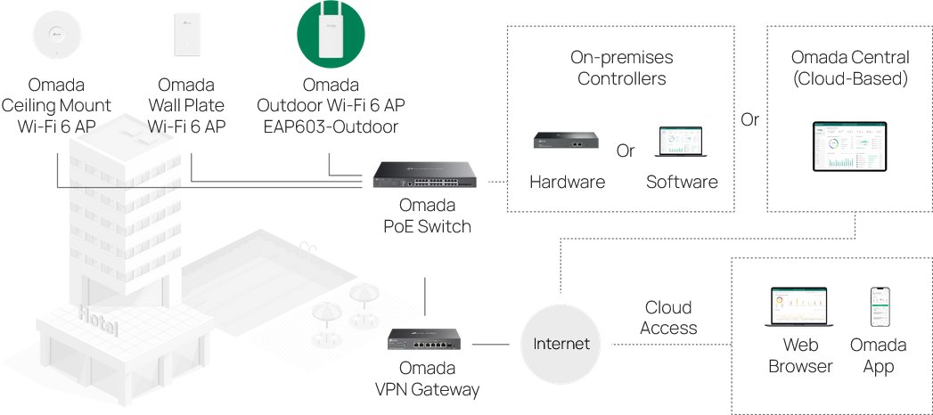 Robustní provedení s krytím IP65 a ochranou proti blesku 6 kV zaručuje dlouhodobý provoz i v extrémních povětrnostních podmínkách od -30 do 70 °C. Napájení přes PoE+ jediným ethernetovým kabelem výrazně zjednodušuje instalaci a snižuje náklady. Centrální správa v Omada SDN, podpora mesh sítí a plynulý roaming umožňují rychlé nasazení, snadnou konfiguraci a bezproblémový provoz celé sítě.