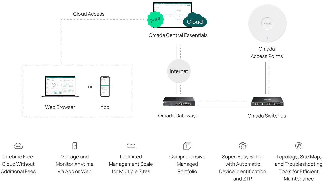 Okamžité zprovoznění díky plug-and-play doplňuje možnost centrální správy přes Omada SDN platformu, webové rozhraní nebo mobilní aplikaci. Celá síť tak může být řízena z jednoho místa společně s přístupovými body a branami. Bezvětrákové provedení zaručuje zcela tichý chod, kovové šasi pak dlouhou životnost. Flexibilní instalace na stůl, zeď nebo do racku usnadní nasazení v jakémkoli prostředí.
