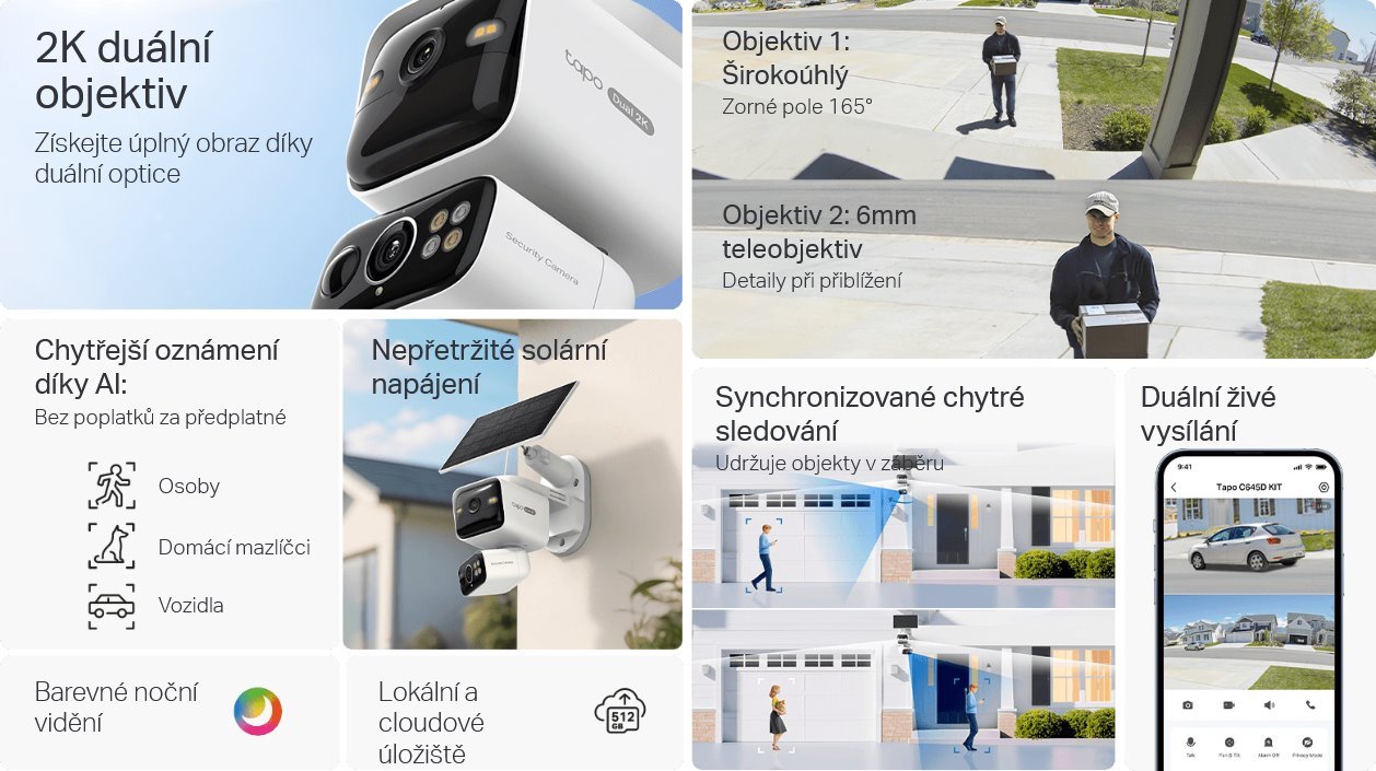 TP-Link Tapo C645D KIT Bezpečnostní otočná kamera s naklápěním a dvěma objektivy + solární panel, 3Mpx