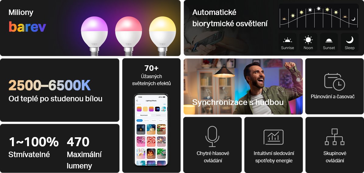 TP-Link Tapo L430P, Chytrá Wi-Fi LED žárovka barevná, 2500-6500K, E14