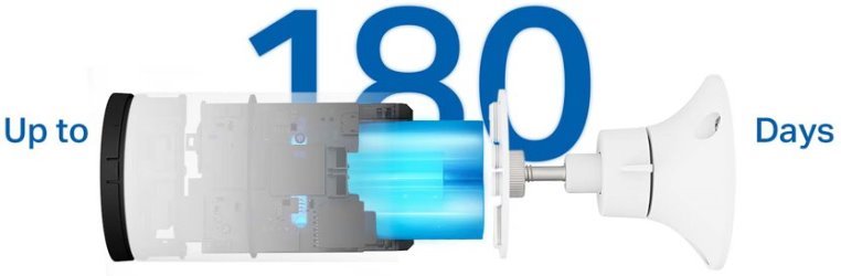 Kamera obsahuje nabíjecí a vyměnitelnou baterie s protokolem nízké spotřeby energie, která výrazně prodlužuje dobu používání. Výdrž baterie až 180 dní vychází z laboratorního testování společnosti TP-Link při spuštění 230 událostí denně nebo 180 dní při 250 sekund používání denně. Skutečná výdrž baterie se může lišit podle nastavení a způsobu používání zařízení a faktorů okolního prostředí.