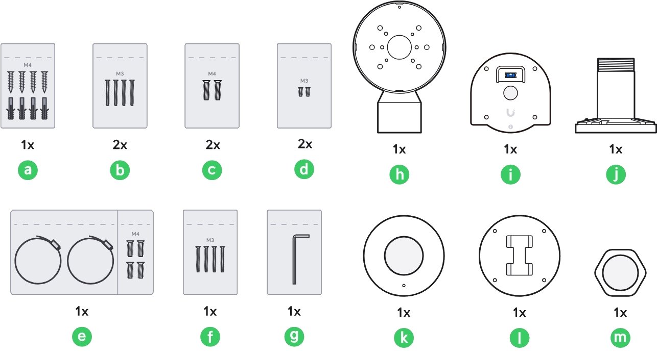Dome kamera z rodiny UniFi Protect disponuje 8Mpx senzorem (3840 x 2160 px) při 30 fps, fixním objektivem cca 2.8 mm (není výrobcem uvedeno, odvozeno od pozorovacího úhlu - 110°) , IR přísvitem na 40 metrů