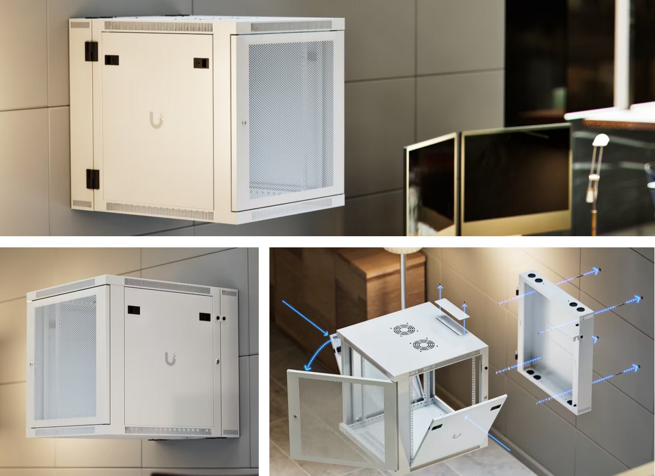 Ubiquiti UACC-Rack-12U-Wall-SW-P, Dvoudílný datový nástěnný rozvaděč 19" 12U/703mm, perforované dveře