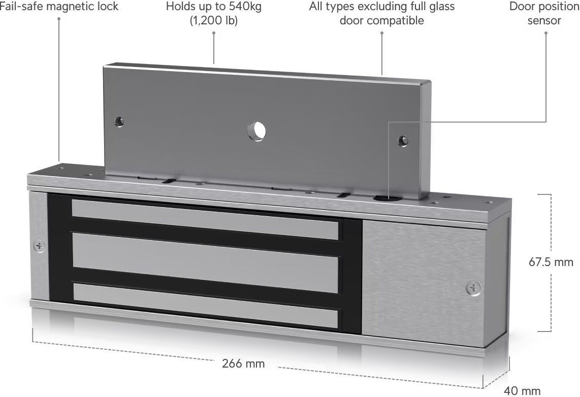 UniFi Access Lock Magnetic je magnetický zámek s funkcí fail-secure, který se připojuje k UniFi Access Hub (UA-Hub) zařízení obsahující svorky pro napájení Lock Relay (COM a NC) a řízení vstupu DPS ( + a -). Zámek zajišťuje bezpečnost dveří s odolností až 540 kg. Instalovat lze na dřevěné, železné nebo skleněné dveře. Pro optimální zabezpečení a integrovaný přístupový systém spojte UniFi Access Lock Magnetic s UniFi Access Hubem a užívejte si jednoduchou správu a kontrolu.