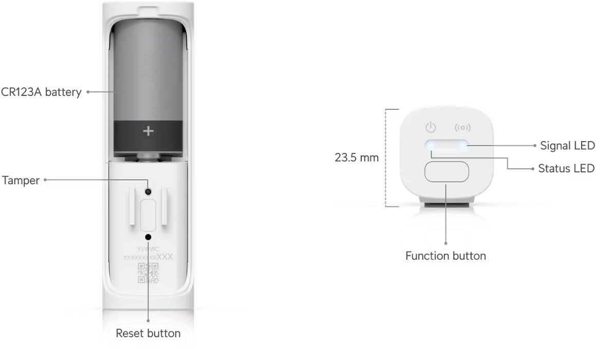 Bezdrátový vstupní senzor s technologií SuperLink je určen pro precizní monitoring otevření a zavření dveří či oken. Díky pokročilému reed spínači poskytuje přesnou detekci změny magnetického pole a okamžitě odesílá upozornění do systému UniFi Protect. Bezdrátová technologie SuperLink s dosahem až 2 km zaručuje výjimečně stabilní přenos dat i v náročných podmínkách. Senzor komunikuje na frekvencích 865.1–869.5 MHz, což umožňuje jeho nasazení v různých typech objektů — od domácností po komerční prostory.