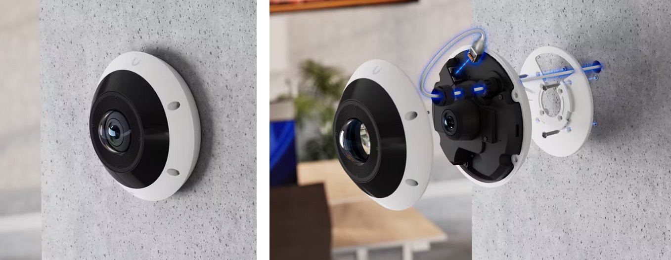 Montážní krabička bílé barvy je navržena pro vnitřní montáž na zeď, strop, stožár či trubku se závitem 3/4" včetně uschování kabelů Fisheye UVC AI 360 kamery od Ubiquiti Networks. Je vyrobená z kvalitního a