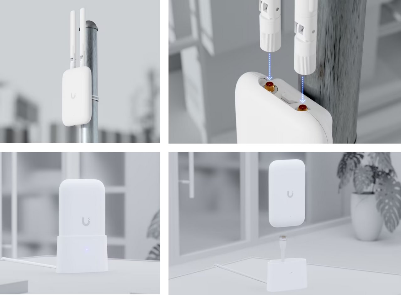 Sada dvou Dual Band dipole všesměrových antén a plastového stojánku vyrobeno na míru pro UniFi Access Point UK-Ultra (UniFi Swiss Army Knife Ultra). Antény mají venkovní provedení, jsou zakončeny RSMA male konektory, pracují ve 2.4 i 5 GHz pásmu a dosahují anténního zisku 3 dBi (2.4 GHz) a 4 dBi (5 GHz). Jedná se o jednoduché řešení, jak zvýšit anténní zisk u UK-Ultra vysílací jednotky. Plastový stojánek disponuje pogumovanou spodní stranou proti pohybu a otvor pro přivedení síťového kabelu.