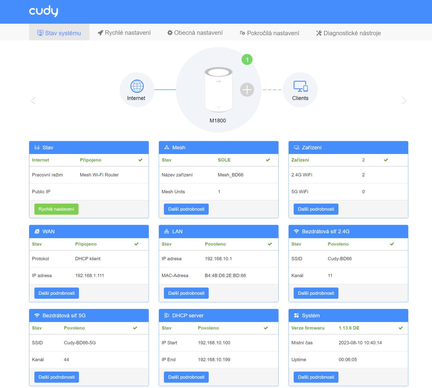 Mesh systém není nic jiného než sada routerů pro použití v domácnostech, bytech, nebo kancelářích, kde je pokrytí Wi-Fi sítí z jednoho routeru příliš slabé. Mesh jednotky si mezi sebou automaticky předávají klienty a komunikují mezi sebou pouze bezdrátově. Balení obsahuje dvě zařízení, která jsou již vzájemně nakonfigurována a nevyžadují zásah uživatele kromě nastavení názvu Wi-Fi. Ideální řešení pro pokročilé i laiky v oblasti správy sítí a budování velké bezdrátové sítě.