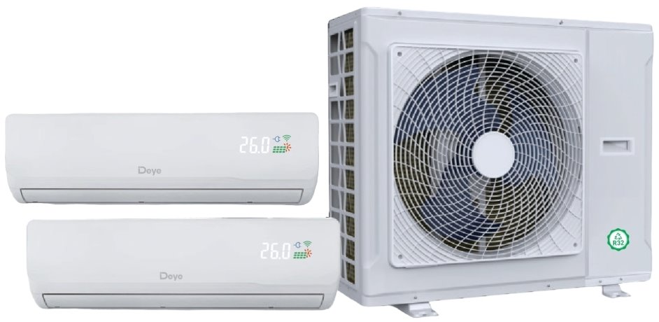 DEYE Hybridní AC/DC Solární Multi-Split klimatizační set, 27kW vnější + 2x 12kW vnitřní jednotka