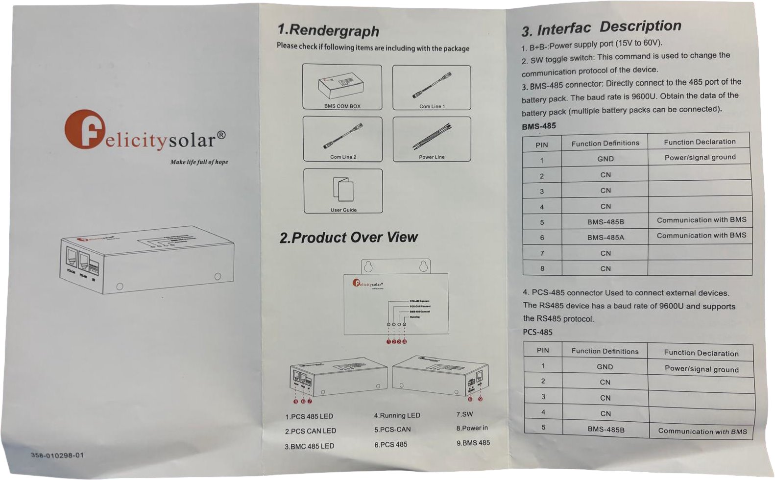Felicity BMS COM BOX, Převodník komunikace z RS-485 (BMS) na CAN