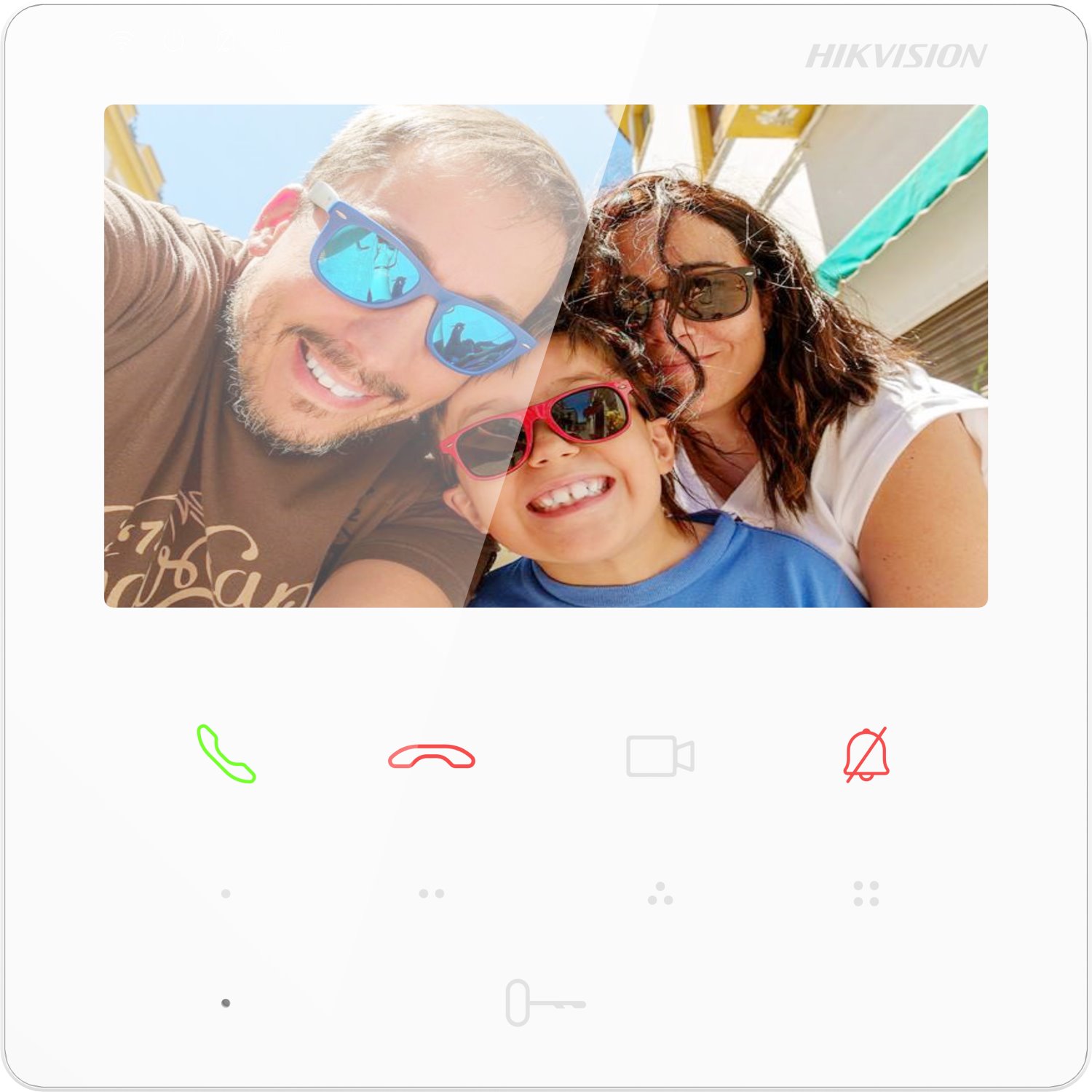 Elegantní video interkom v bílé barvě s 4,3" barevným dotykovým TFT displejem přináší spolehlivou komunikaci a přehled o dění před vašimi dveřmi. Umožňuje snadné ovládání díky přehlednému českému menu a dotykovému rozhraní, které zaručuje rychlý přístup ke všem funkcím. Díky propojení s mobilní aplikací Hik-Connect lze hovory a obraz sdílet přímo na váš smartphone či tablet, takže máte přehled o návštěvách i mimo domov. Elegantní design a kompaktní rozměry 120 x 120 x 21 mm dokonale zapadnou do každého moderního interiéru.
