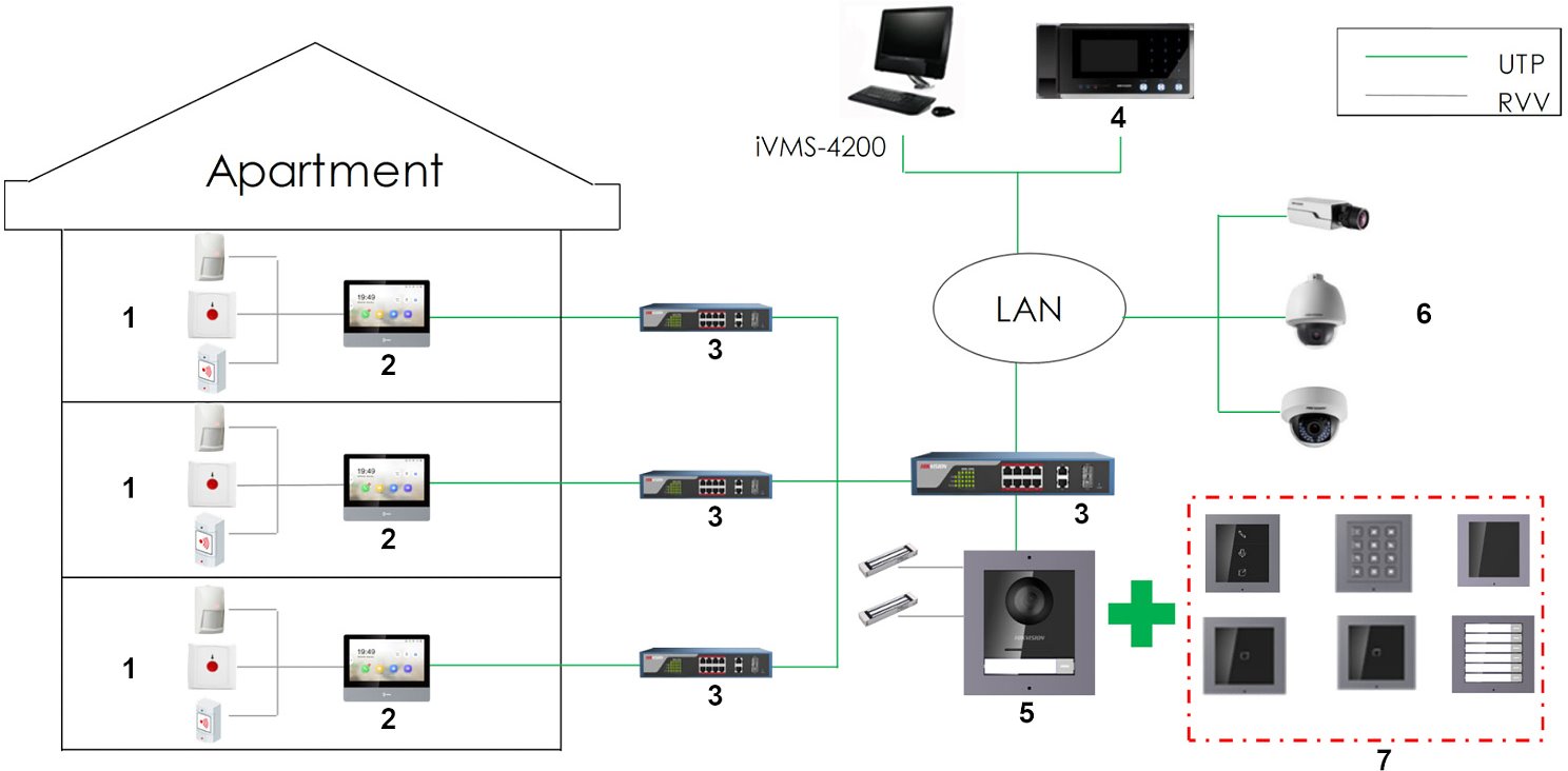 Interkom podporuje Wi-Fi připojení (802.11b/g/n) i protokoly TCP/IP, SIP a RTSP, což umožňuje jednoduchou integraci do existujících systémů a propojení s mobilní aplikací či PC softwarem. Uživatelé mohou sledovat živý obraz z dveřních stanic nebo až 16 připojených IP kamer a nezávisle ovládat dva dveřní zámky. Vestavěný všesměrový mikrofon a reproduktor s potlačením šumu a ozvěny zajišťují čistou a srozumitelnou komunikaci. Osm alarmových vstupů a dva výstupy umožňují připojit senzory, například PIR detektory či kouřová čidla, čímž se z interkomu stává multifunkční centrum domácí bezpečnosti.