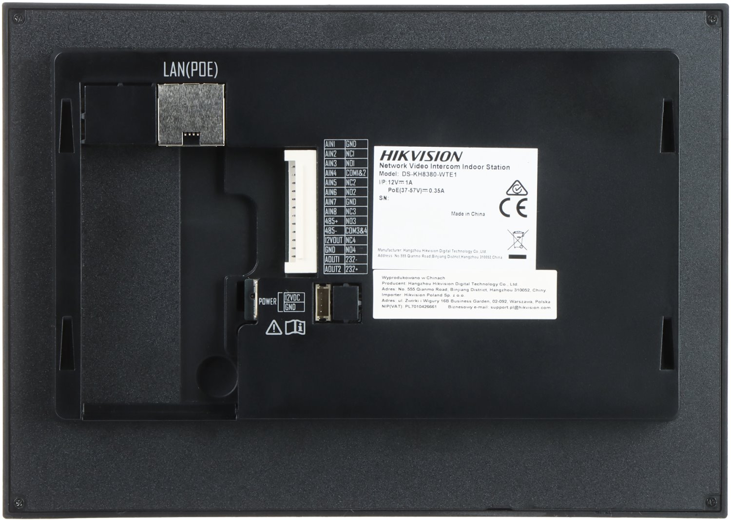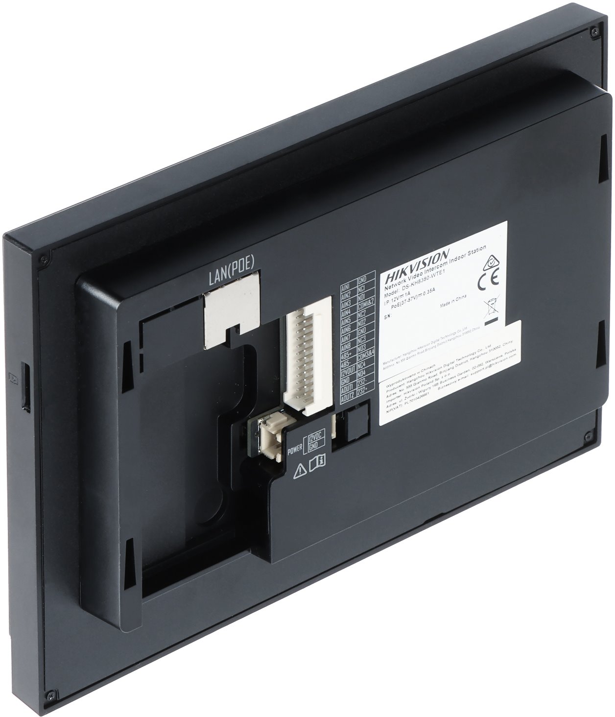 Zařízení podporuje povrchovou i zapuštěnou montáž, což zajišťuje flexibilitu při instalaci v interiéru. Napájení lze zajistit pomocí PoE IEEE802.3at nebo DC svorkovnice 12 V / 1,5 A, přičemž maximální spotřeba nepřekračuje 12 W. Monitor je vybaven všesměrovým mikrofonem a reproduktorem, osmivstupovým alarmem a je navržen pro provoz v teplotním rozsahu -10 až 50 °C, což zajišťuje spolehlivý chod v různých prostředích.