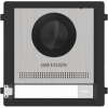 Modulární IP dveřní modulární interkom značky Hikvision v elegantním nerezovém provedení s jedním tlačítkem , obousměrným audiem (mikrofon i reproduktor), I/O a HD kamerou (2 Mpx) s pozorovacím úhlem 146° a