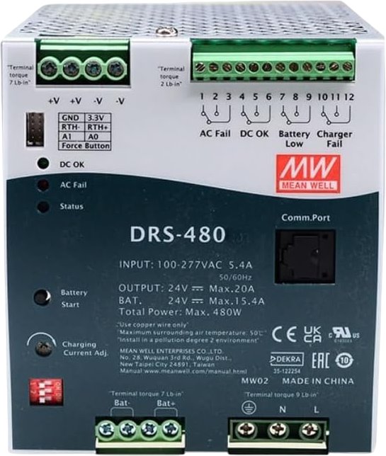 MEAN WELL DRS-480-24, Programovatelný zálohovaný zdroj na DIN lištu, 480W, 24V