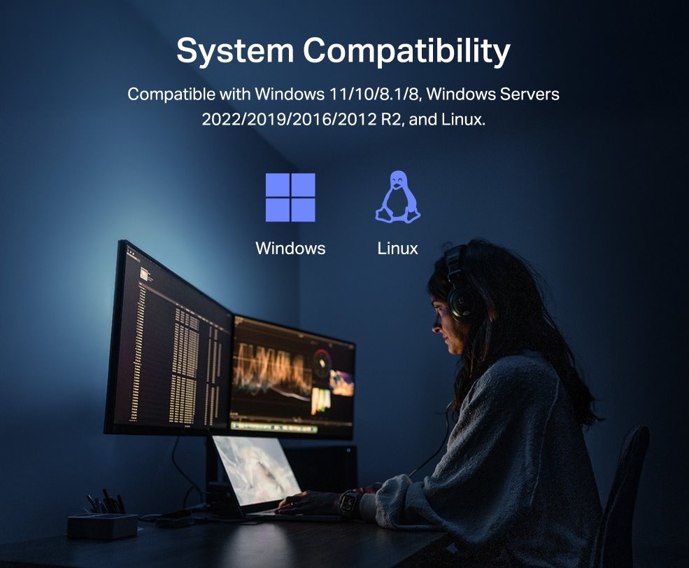 Síťový adaptér s výkonem až 10 Gb/s posouvá datové přenosy na zcela novou úroveň – ideální pro práci s velkými soubory, streaming ve vysokém rozlišení nebo profesionální využití. Díky funkci Multi-Speed se automaticky přizpůsobí dostupné rychlosti sítě a zajistí stabilní provoz i v náročných podmínkách. Připojení k NAS zařízením probíhá bleskově, což z něj činí perfektní řešení pro lokální vysokorychlostní úložiště. Mechanismus řízení toku Flow Control garantuje přenos bez ztráty paketů a výrazně snižuje latenci, takže poskytuje multi-gigabitový zážitek i při maximální zátěži.