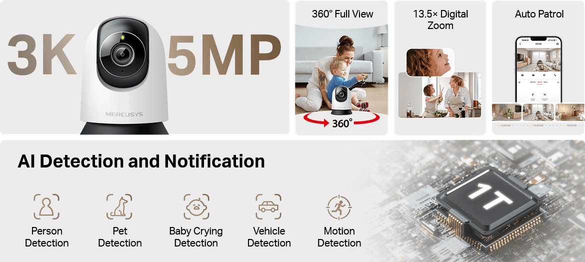 MERCUSYS MC230 Domácí bezpečnostní otočná Wi-Fi kamera, 5Mpx
