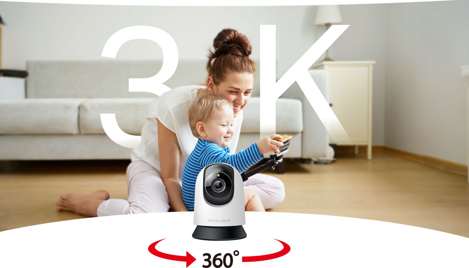 Domácí bezpečnostní Wi-Fi kamera poskytuje video ve vysokém rozlišení 3K 5 Mpx (2880 x 1620), které zachycuje každý detail s maximální jasností. Díky funkci otáčení a naklápění s 360° horizontálním úhlem je možné monitorovat celý prostor bez slepých míst. Kamera inteligentně sleduje pohyb 24/7 a díky pokročilému nočnímu vidění až do 12 metrů zajistí nepřetržité sledování i za úplné tmy.