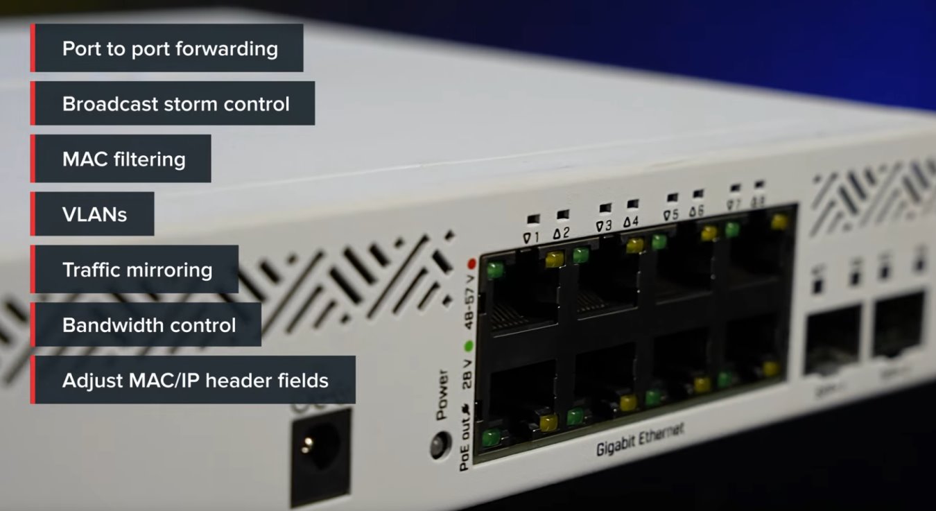 Součástí je také speciálně navržený operační systém Switch OS (SwOS) pro rychlé přepínání a velkou škálu nastavení. SwOS lze tedy plně nastavit z vašeho webového prohlížeče. To vám dává všechny základní funkce pro řiditelný přepínač (switch), plus další: umožňuje spravovat port-to-port forwarding, filtr MAC adres, VLAN konfiguraci, mirror traffic, omezení trafficu a dokonce i nastavení MAC a IP hlaviček.