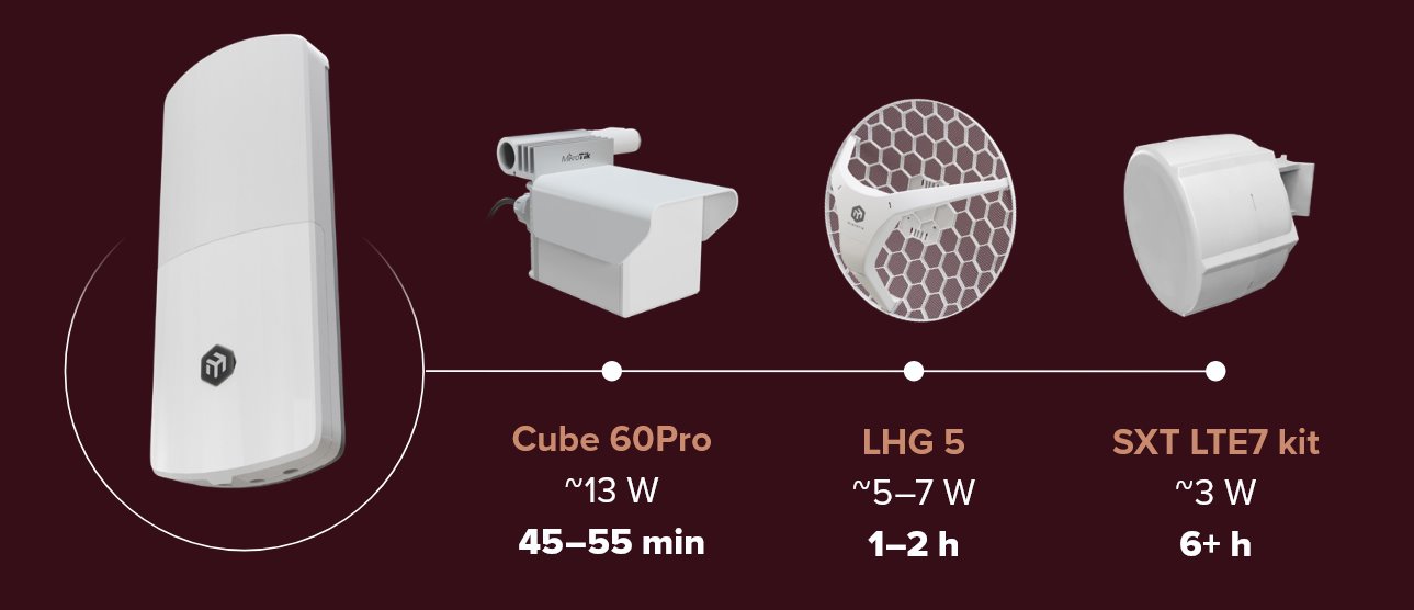 Vnitřní Li-Ion baterie 2500 mAh udrží linku aktivní při krátkých výpadcích nebo poklesech napětí, čímž zabraňuje opakovanému přetěžování a restartům zařízení. Zařízení běží na plné verzi SwOS Lite s pokročilou správou – VLAN, SNMP, traffic shaping a ACL umožňují filtrování paketů, účtování a správu VLAN na úrovni L2–L4. Inteligentní správa baterie zahrnuje deaktivaci při přepravě, automatické spuštění při prvním zapnutí a možnost vzdáleného přepnutí do režimu přepravy.