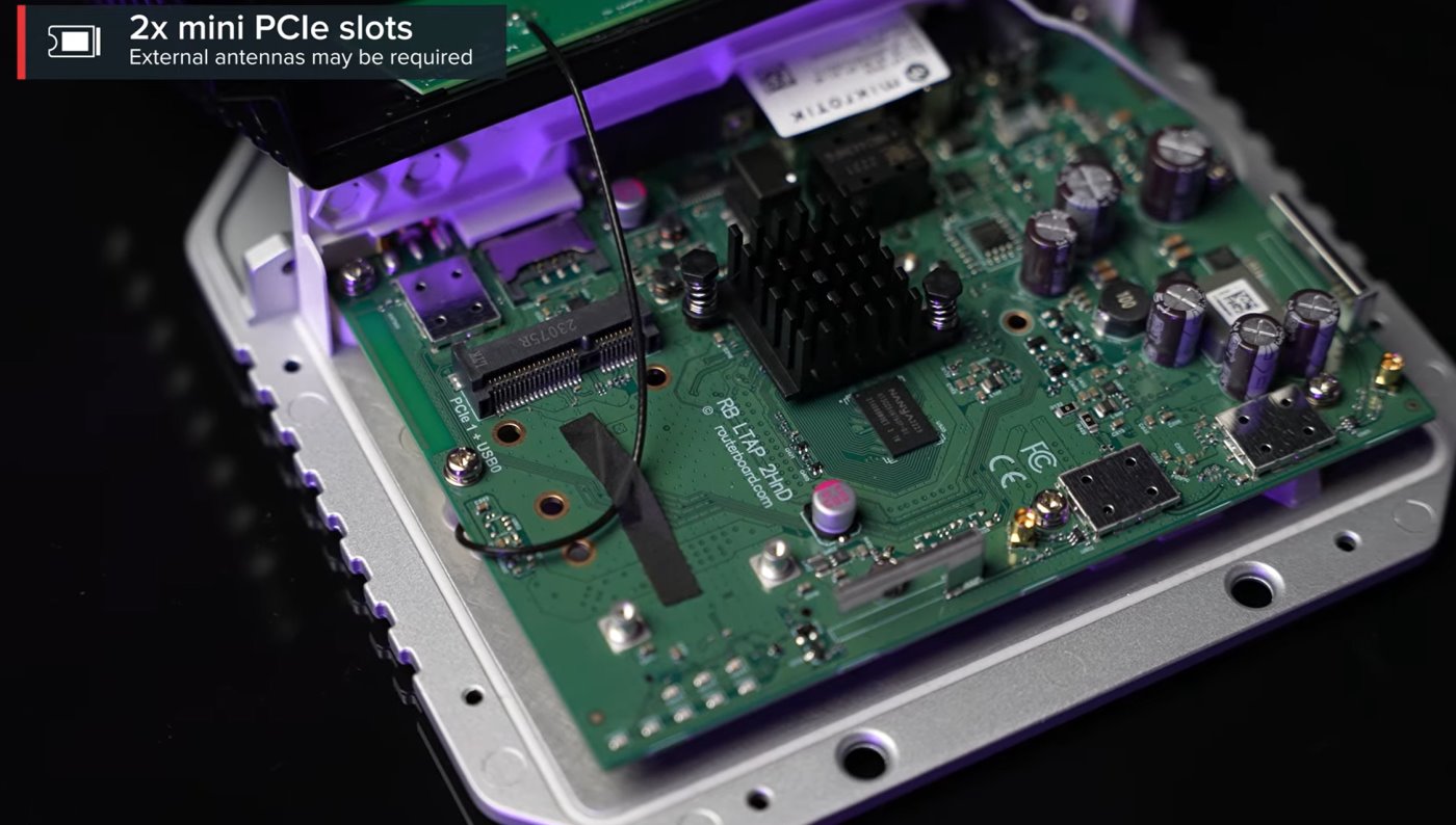 Jednotka přichází s jedním volným miniPCI-e slotem, který nabízí mnoho možností pro rozšíření. Například můžete nainstalovat druhý LTE modem pro redundantní připojení nebo 5 GHz kartičku pro Dual Band Wi-Fi. Druhý miniPCIe slot je obsazený LTE7 modemem R11e-LTE7 s podporou LTE kanálů (1, 3, 5, 7, 8, 20, 28, 32, 38, 40 a 41).