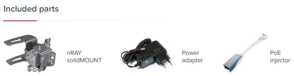 MikroTik nRAYG-60adpair disponuje 1x Gigabitovým Ethernetem s podporou PoE. Jednotku lze napájet jak přes aktivní (802.3af/at), tak i pasivní PoE s rozsahem 12 až 57 V. Maximální spotřeba zařízení je pouhých 6W!