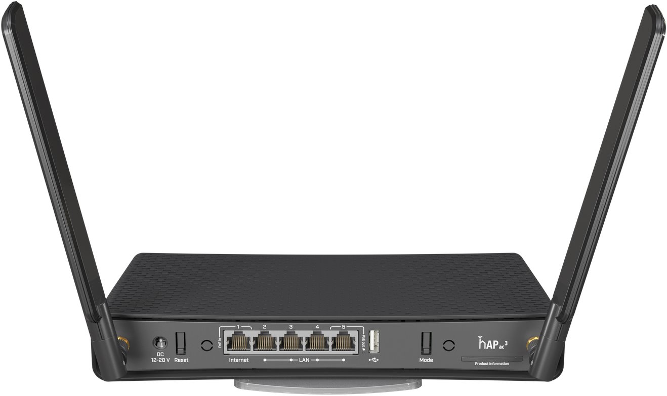 S celkem pěti Gigabitovými ethernety, 256 MB RAM a čtyřjádrovým procesorem může hAP ac3 uspokojit i velké a náročné domácnosti. K dispozici je standardní USB port pro možnost rozšíření úložiště. Díky inovativnímu držáku lze zařízení připevnit vertikálně i horizontálně. Sada pro uchycení na zeď je také součástí balení.